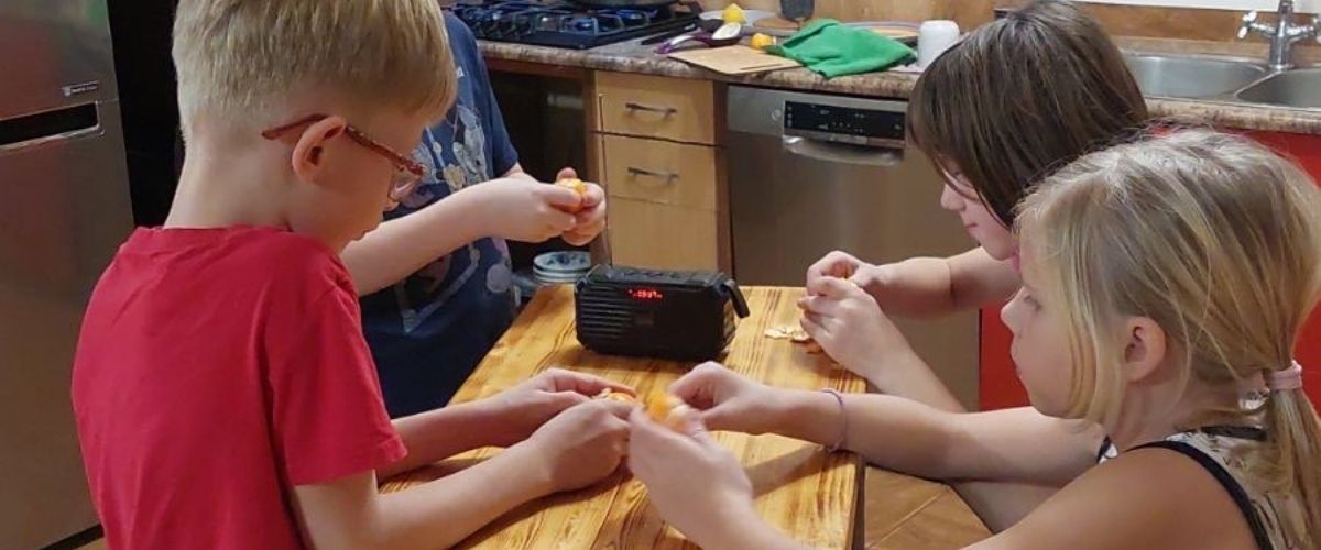 Children in Belarus gather around a radio to listen to TWR's children's programming. [image courtesy of TWR ministry contacts]